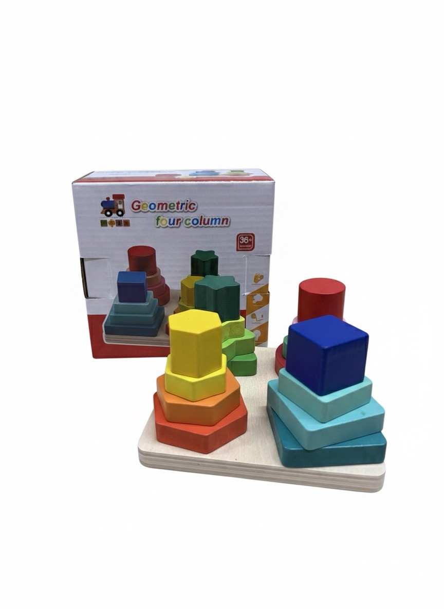 Incluye 4 columnas con figuras geométricas apilables