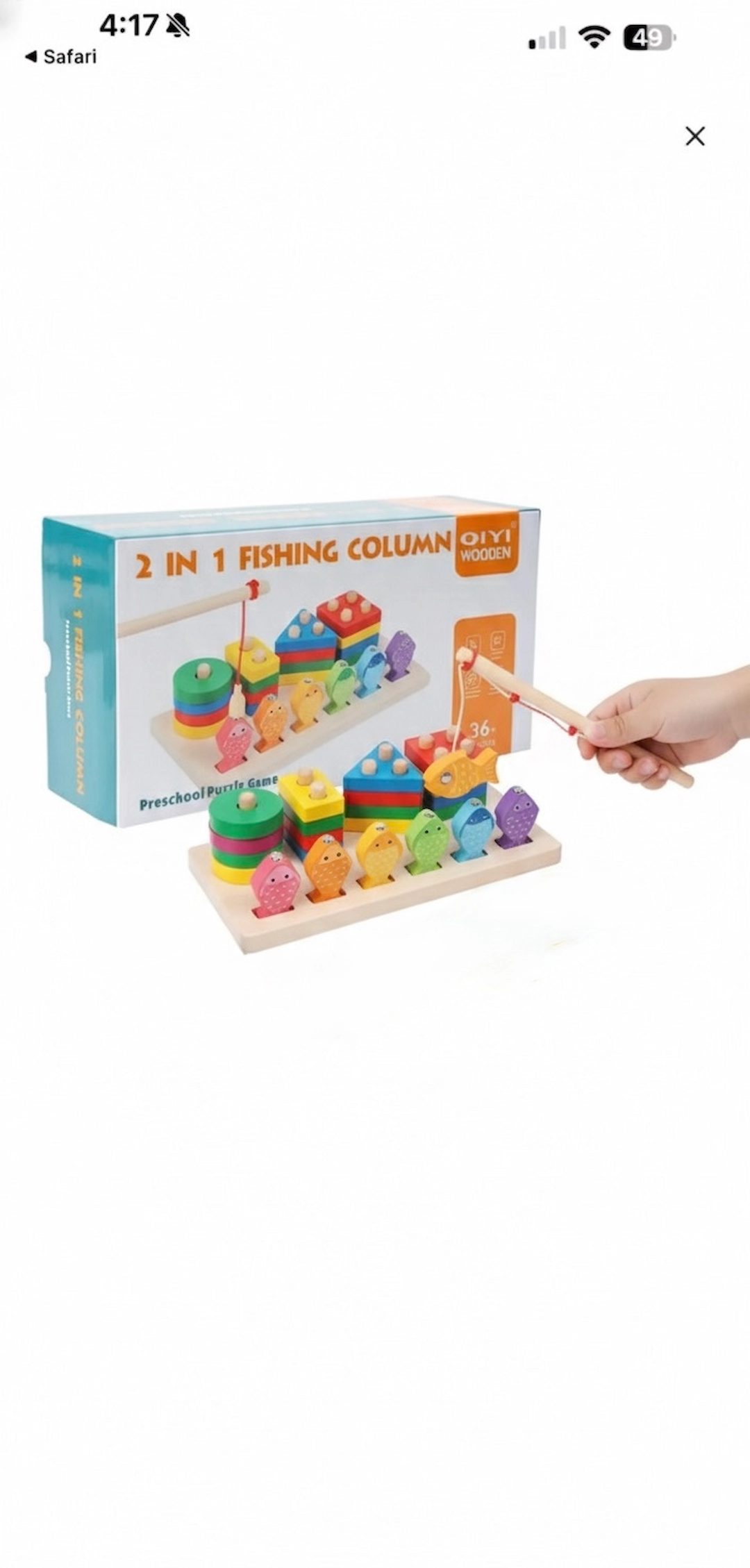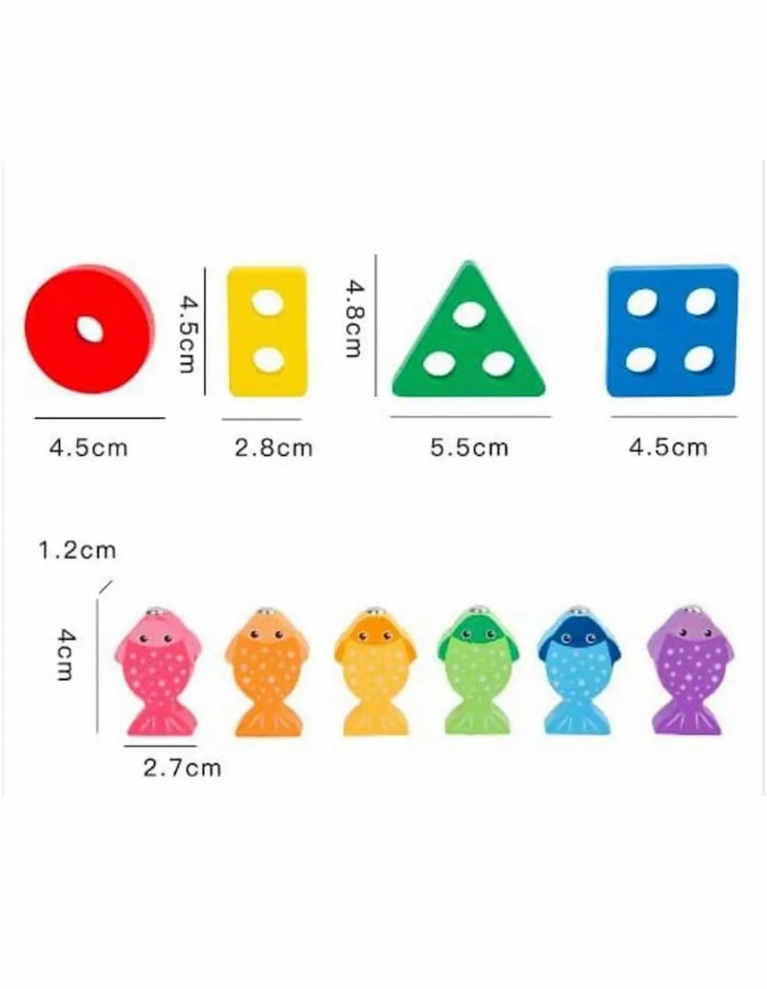 Este juego de madera está diseñado para estimular las habilidades de los más pequeños mientras se divierten sin parar. Incluye un colorido set de pescaditos imantados y columnas de figuras geométricas para clasificar, apilar y aprender.