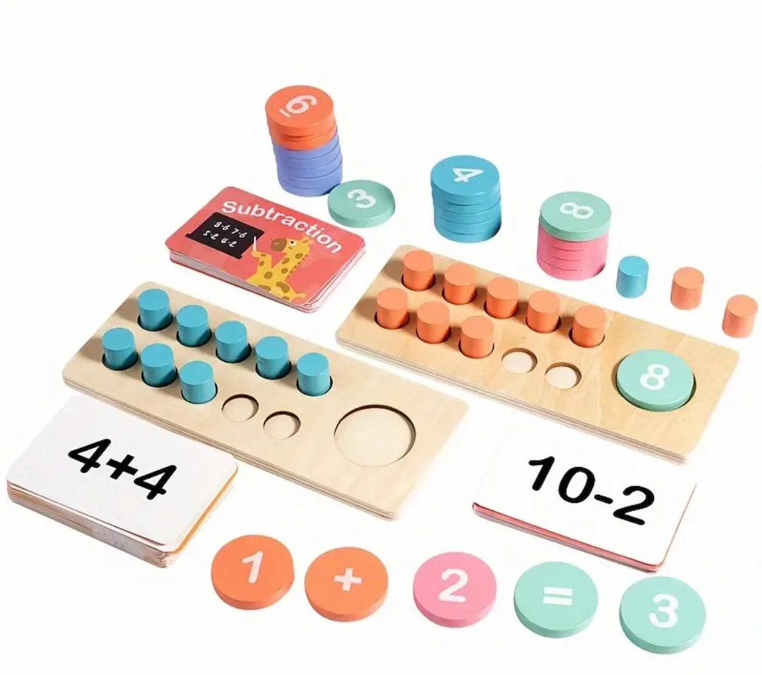 JUEGO DIDACTICO MADERA NUMEROS SUMA Y RESTA CJ