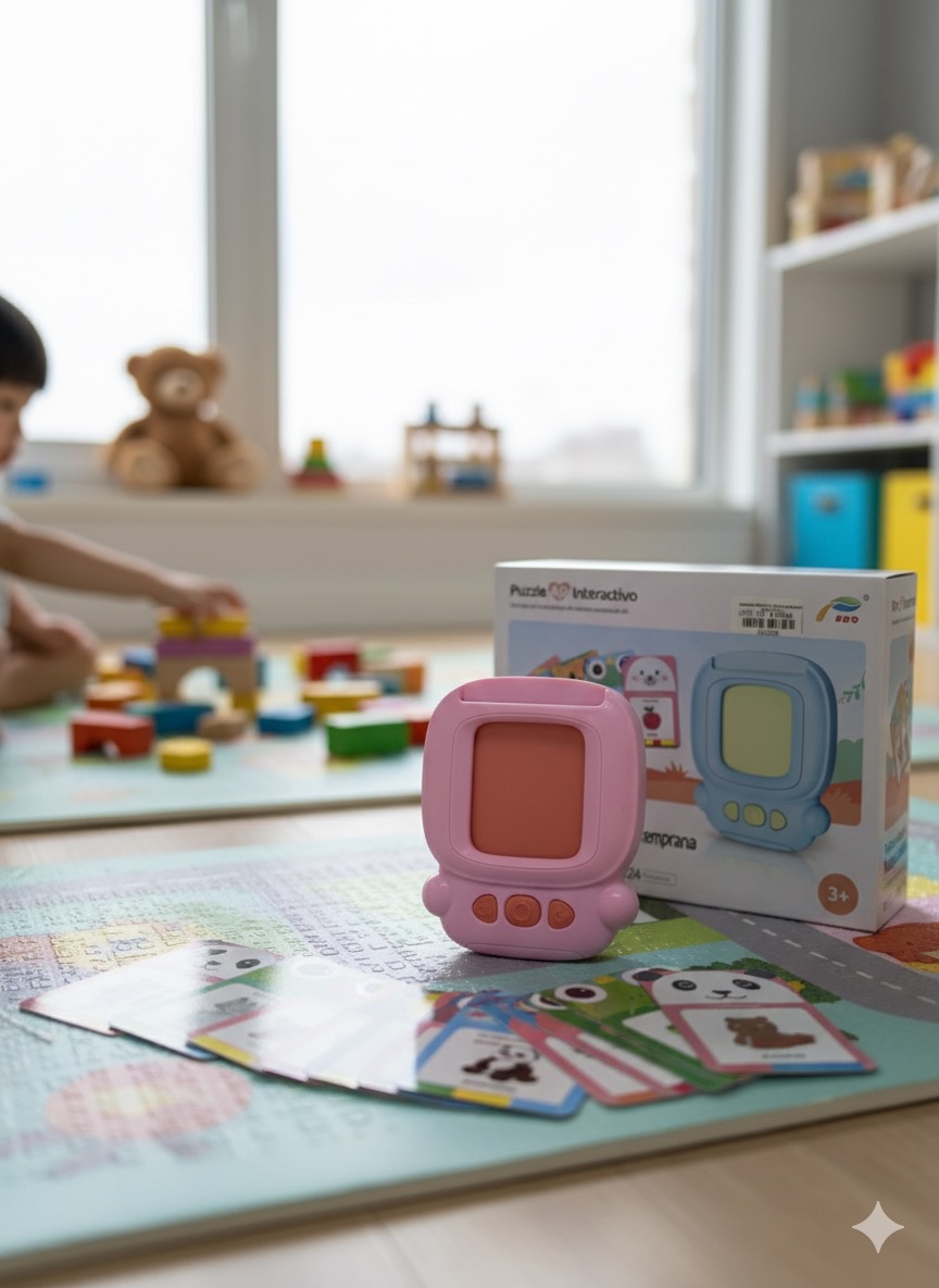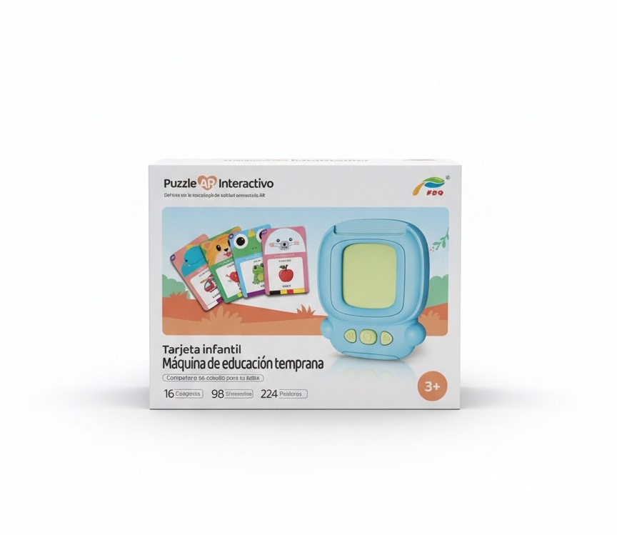 La Máquina de Educación Temprana con Tarjetas Infantiles es un juguete interactivo diseñado para estimular el aprendizaje de los niños desde los 3 años. Incluye tarjetas ilustradas que enseñan palabras, sonidos y conceptos básicos, combinadas con un dispositivo electrónico que reproduce audio y actividades educativas. Ideal para desarrollar vocabulario, memoria y asociación visual–auditiva de forma divertida.